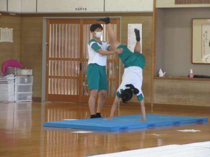 いろいろな技に挑戦します。 助け合う姿もすてきです。