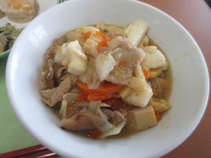答えは、いか、ベビーコーン、タケノコ、にんじん、タマネギ、シイタケ、白菜、豚肉でした!!
