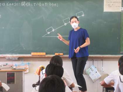 理科の授業です。 物体がだんだん速くなる運動に、力はどのように関係しているのかを学習しました。