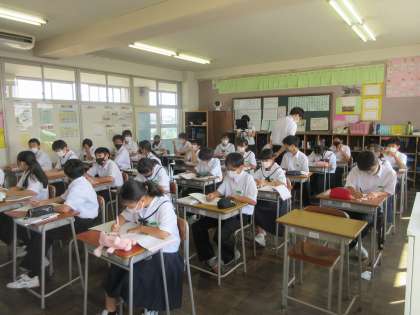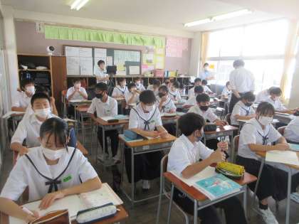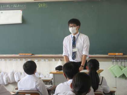 教育実習生が、1-1で数学の研究授業を行いました。 文字を使った式を学習しました。