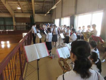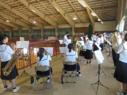 16日から行われる、富山市新人対に向けて、壮行会を行いました。 吹奏楽部の演奏で、選手が入場します。