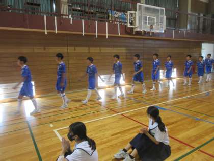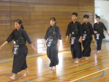 女子ソフトテニス部、サッカー部、剣道部の入場です。