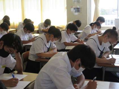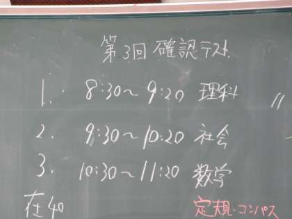 第3回確認テスト 公開日 2022/09/16 更新日 2022/09/16 第3学年 3年生は、昨日に引き続き確認テストを受けています。 今日は、3教科です。学習成果を確認しましょう。 最後まで、あきらめないで、粘って!