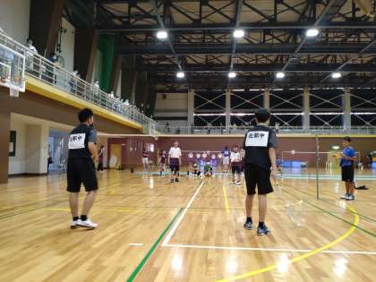 男子バドミントン競技は、婦中体育館で熱戦が展開されています。