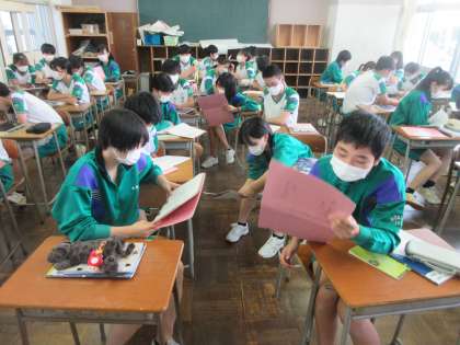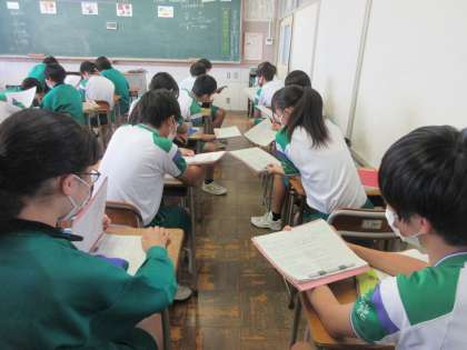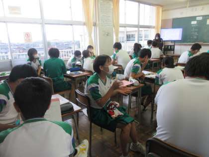 英語の授業です。 コンゴのゴリラについてのスライドを見て、リテリングしました。