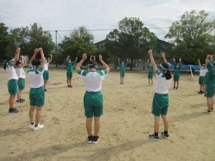 小グループに分かれて、振り付けを覚えます。 「もう少し高い位置で手をたたいてぇ!!」