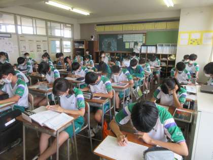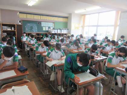 理科の授業です。 生物の成長の復習プリントに取り組みました。