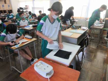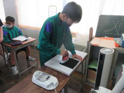 慎重にアイロンをかけています。 これで、家でもお手伝いができます。