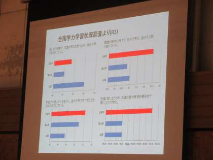 学校の様子や学習について、そして生活について写真等で説明しました。