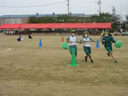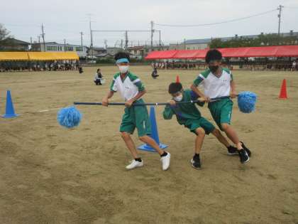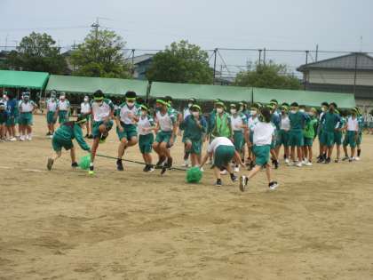 1年生の「台風の目」です。 外側の選手は、大変・・・。 ぼ〜っとしてると、足にひっかかります。
