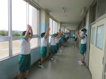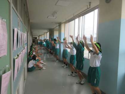 グラウンドコンディションが悪いため、校舎内での最後の団別活動です。 振り付けは、完璧に覚えました!!