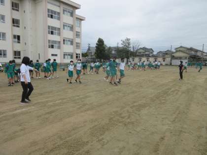 1年生は、グラウンドの石拾いをしました。 1列に並んで、細かな石も拾います。 ありがとう!!
