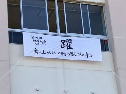 実行委員も準備万端!! スローガンが生徒を見守ります!!