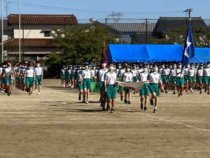 開会式が始まりました!! 団旗を先頭に、入場行進です!!