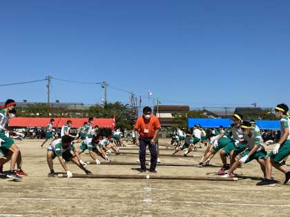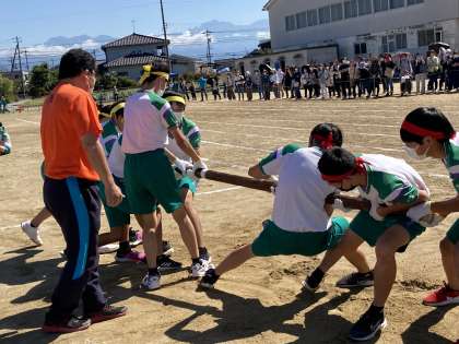 第76回体育大会 その25 公開日 2022/09/29 更新日 2022/09/29 北中NEWS プログラム9番 3年生男子による「棒引き」の様子です。 3位決定戦は、悍虎VS跳鯉!! 「がんばれ!!がんばれ!!」