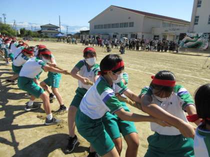 第76回体育大会 その27 公開日 2022/09/29 更新日 2022/09/29 北中NEWS プログラム10番 「綱引き」 3位決定戦 跳鯉VS鋭鷲 跳鯉が綱を引っ張ります!「鋭鷲に負けるか!」