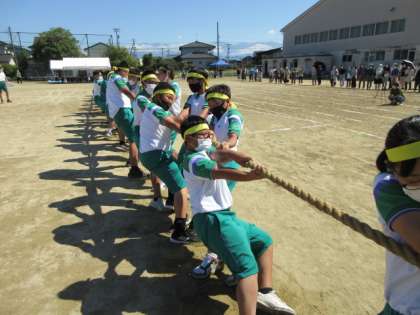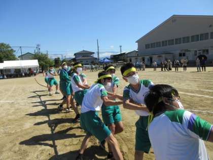 第76回体育大会 その29 公開日 2022/09/29 更新日 2022/09/29 北中NEWS プログラム10番 「綱引き」 いよいよ決勝戦です。悍虎VS昇龍 悍虎が綱を引っ張ります!「この勝負は、俺たちがもらったぜ!」