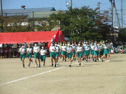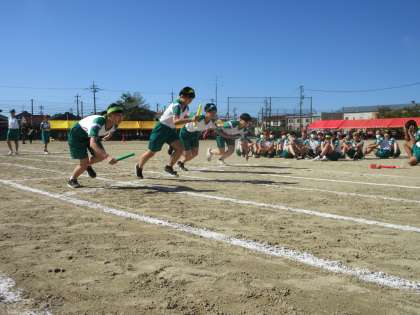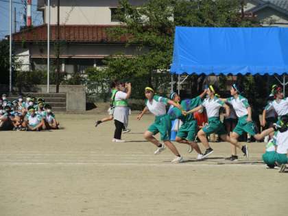女子の学年別リレーが始まりました。 各学年の代表選手が走ります。まずは、1年生です。