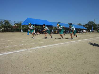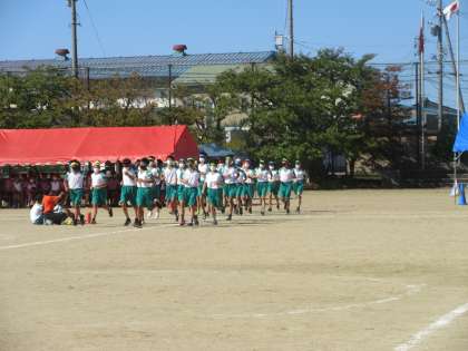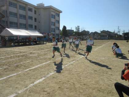 第76回体育大会 その55 公開日 2022/09/29 更新日 2022/09/29 学校行事 さあ、いよいよクライマックス!! 総合リレーです。各団の精鋭の登場です。 1年生女子、男子、2年生女子、男子、3年生女子、男子とバトンをつなぎます。