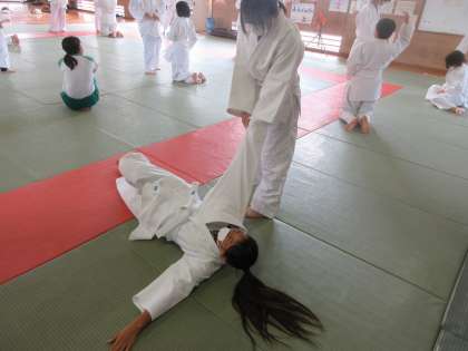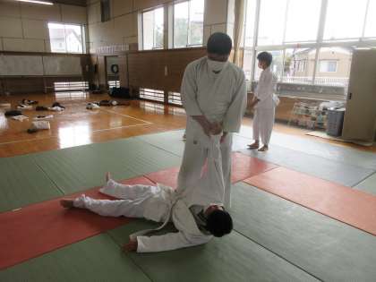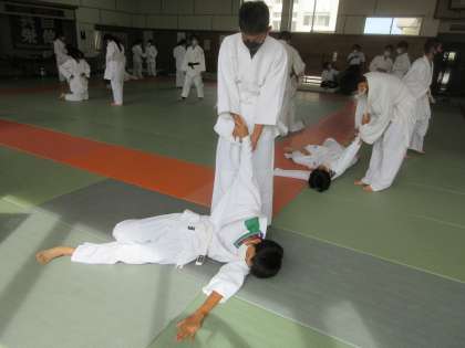 保健体育の授業です。 柔道です。投げられたときの引き手や受け身を学習しました。
