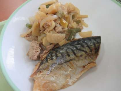今日の給食 公開日 2022/10/04 更新日 2022/10/04 給食 秋らしく、キノコたっぷりの「きのこ汁」と脂ののった「さばの塩焼き」、絶品です!! ごはん 牛乳 さばの塩焼き マコモタケの炒め物 きのこ汁