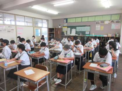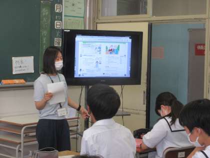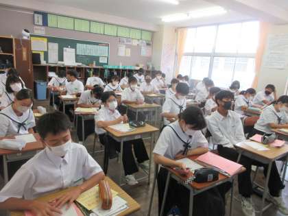 英語の授業です。 朝美とデイビットの対話を学習しました。