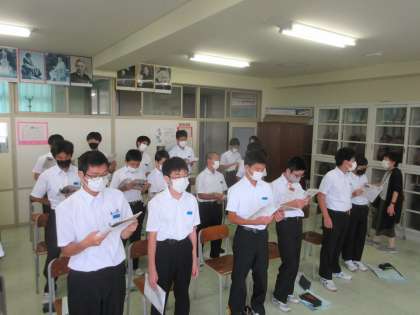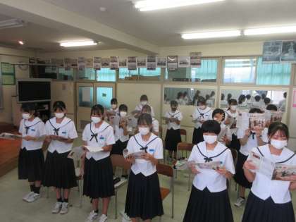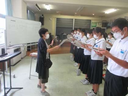 音楽の授業です。 学年合唱曲「大切なもの」を練習しました。