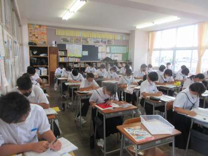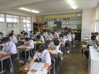 2−4 公開日 2022/10/04 更新日 2022/10/04 第2学年 理科の授業です。 テスト範囲の復習プリントに取り組みました。 「ここ、テストに出たらいいのになぁ・・・。」 「そんなに、甘くはない!!」