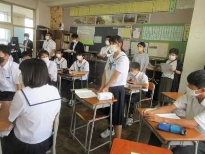 友達と意見交換することで、自分の意見に自信をもって発表します。