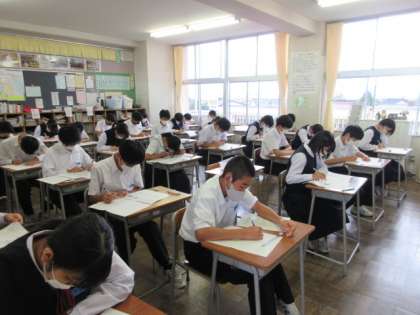 2学年 中間評価の様子 その1 公開日 2022/10/05 更新日 2022/10/05 第2学年 中間評価1日目。 2年生は、1限数学 2限社会 3限国語です。 担任の先生からのメッセージを受け、頑張っています。