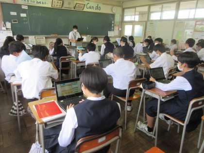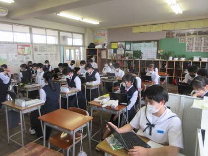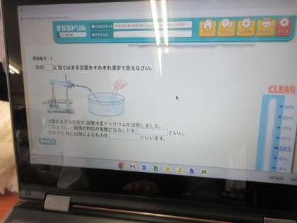理科の授業です。 クロムブックを使って、デジタル教材の問題に取り組みました。