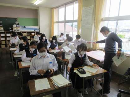 社会の授業です。 九州地方の確認プリントに取り組みました。