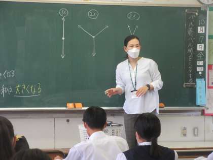 理科の授業です。 一つの物体に、ある角度をもった二つの力がはたらくとき、どのように表すのかを学習しました。