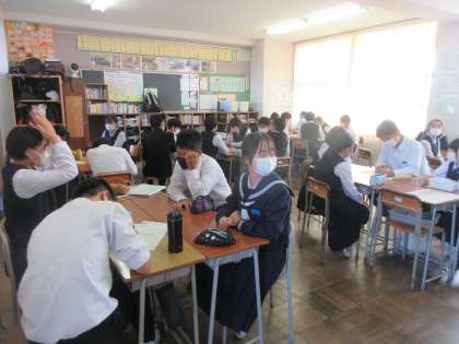 仕事内容等を書き上げます。 「色画用紙は、オレンジ色がいいな!!」