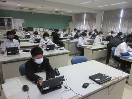 技術・家庭科の授業です。 タイピングの練習です。
