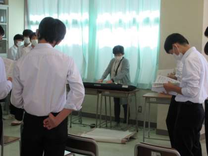3−3 公開日 2022/10/14 更新日 2022/10/14 第3学年 音楽の授業です。 パート別練習をしています。 「僕らの出会いを〜だれかが 別れとよんだ」 歌詞の意味を考え、合唱にしていきます。 3年生の男声は、やっぱり迫力あるなあ。