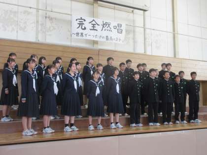 1-2の合唱曲は、「変わらないもの」です。 男子の声が、しっかり女子を支えています。