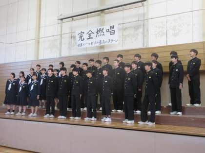 生徒だけの合唱コンクール(3−2) 公開日 2022/10/20 更新日 2022/10/20 第3学年 3-2の合唱曲は、「結ーゆい−」です。 美しいハーモニーです。「3-2ワールド」に引き込まれました。