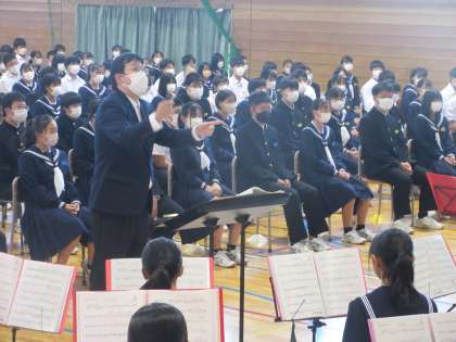 吹奏楽部演奏会 その2 公開日 2022/10/20 更新日 2022/10/20 北中NEWS 顧問の先生の指揮に合わせて、 演奏曲は、 リベラ・アニマス Official髭男dismメドレー 世界に一つだけの花 ジブリ・ソングス パプリカ です。