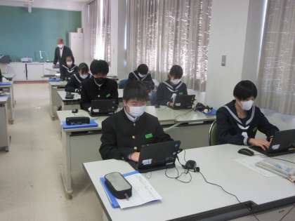 技術・家庭科の授業です。 黙々とタイピング練習です。 ブラインドタッチも、当たり前!!すごい・・・。