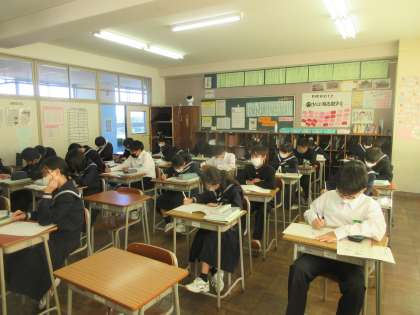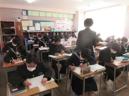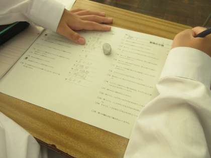 理科の授業です。復習の小テストです。 学習したことを、しっかり覚えているかな!?