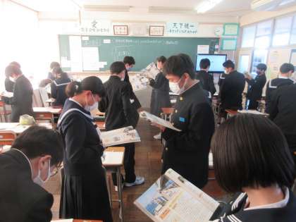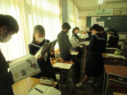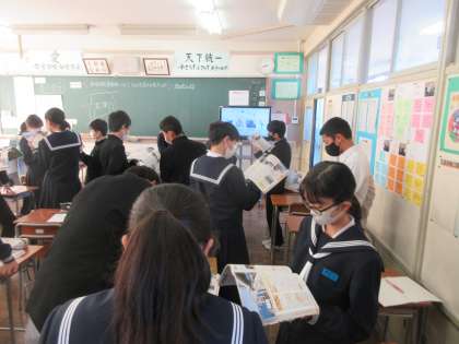 社会の授業です。 本州四国連絡橋について学習しました。 教科書の一行読みをしています。