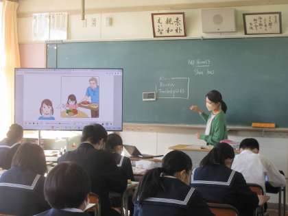 英語の授業です。 教科書の本文の読み取りを行いました。