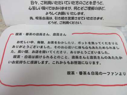 「喫茶 番茶」の閉店案内を出したところ、感謝のお手紙をいただきました。 職員室内の温かな一場面です。