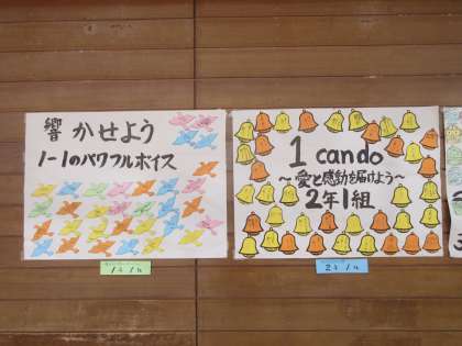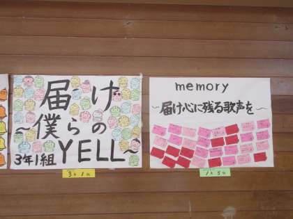 準備万端 公開日 2022/10/21 更新日 2022/10/21 北中NEWS いよいよ明日は、合唱コンクールです。 今年も、学年ごとの開催となりましたが、保護者の皆様、お子様の成長をご覧ください。 1−1、2−1の目標と3−1、1−5の目標です。