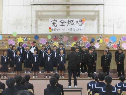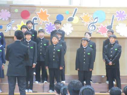 指揮者を中心に、学級が一つになっていました。 歌詞を大切にして、全体が優しい雰囲気でした。