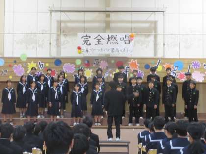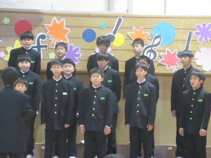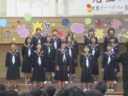 合唱コンクール(1−3)その2 公開日 2022/10/22 更新日 2022/10/22 第1学年 一生懸命に生きることのすばらしさを表現しました。 全員が、メッセージを伝えようと言葉を大切に歌いました。