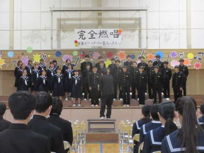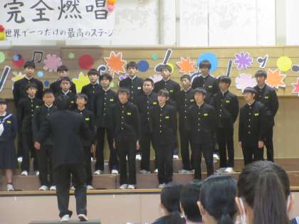 合唱コンクール(3−3)その2 公開日 2022/10/22 更新日 2022/10/22 第3学年 伸びやかなソプラノとアルト。それを男子がしっかりと支えています。 この日のために、仕上げてきました!!