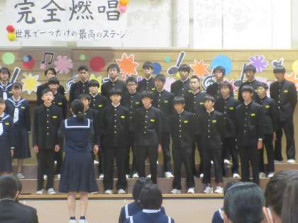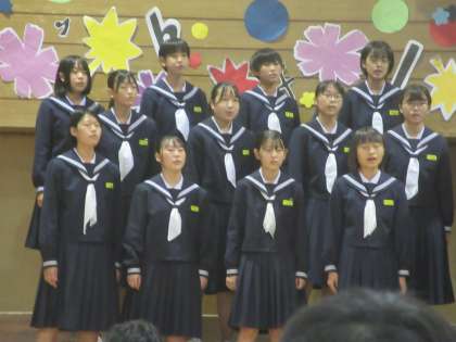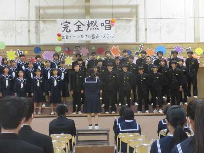 合唱コンクール(3−2)その2 公開日 2022/10/22 更新日 2022/10/22 第3学年 3部の重なりが美しい!! 男子、男らしい声でありながら優しい!! 女子、この人数差を見事に乗り越えた!!