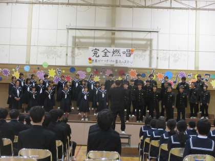 合唱コンクール(3−4)その2 公開日 2022/10/22 更新日 2022/10/22 第3学年 大トリ、お疲れ様でした。 言葉を大切にしながら、歌詞を丁寧に表現しました。 男性らしい、女性らしい美しい歌声でした。
